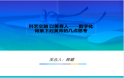 黄璐博士作了《科艺交融、以美育人——数字化背景下对美育的几点思考》主题发言,介绍了美育的概念起源于美育工作的政策意见以及在数字化背景下美育对人文精神与价值重塑的意义,并探讨了科技与艺术之间的本质关系,如何平衡统一、互补转化。