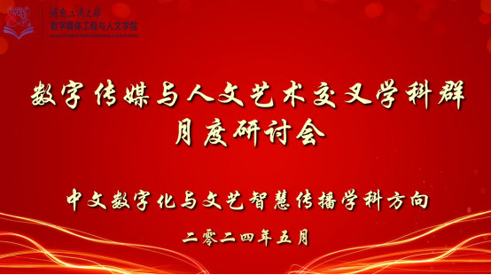 2024年5月16日下午,数字传媒与人文艺术交叉学科群5月月度研讨会以线下加线上的形式在湘江楼1815会议室顺利召开,本次研讨会由数字媒体工程与人文学院中文数字化与文艺智慧传播学科方向承办,彭文忠、杨艺、符姗姗等学科方向负责人以及各学科方向骨干、数字媒体工程与人文学院师生参加了此次研讨会。
