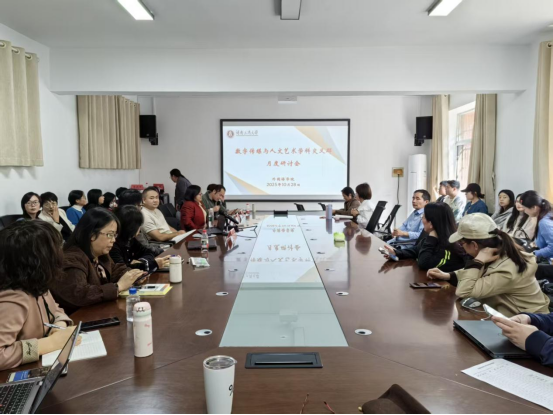 2025年10月28日下午,由人工智能语言服务学科方向承办的数字传媒与人文艺术交叉学科群10月月度研讨会暨外国语学院“语言与世界”教授博士系列讲座于一办公楼221会议室举行。本次研讨会由吴良平老师主持,孙云鹤博士、黄天仕博士、张务教授担任主讲嘉宾,分别围绕“从CALL到iCALL——探索个性化、沉浸式语言学习的未来”“自动批改及误差驱动下的汉语分词与词类标注教学设计”“Social Science Research Methods”主题展开分享。各学科方向负责人、骨干教师及外国语学院全体专任教师、研究生参与此次研讨会。