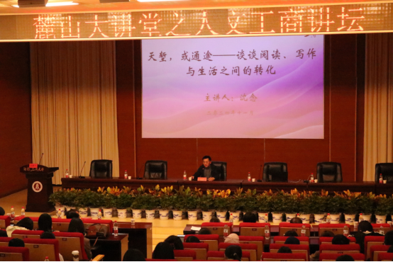 11月2日下午,湖南省作家协会副主席沈念应邀来校主讲“麓山大讲堂”之“人文工商”讲坛第50讲,讲座主题为“天堑,或通途——谈谈阅读、写作与生活之间的转化”。讲座在英才报告厅举行。校党委委员、副校长杨良奇出席。学校师生代表聆听了讲座。