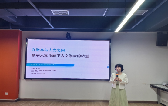 崔庆林博士作了《在数字与人文之间:数字人文命题下人文学者的转型》主题报告,从如何发现数字人文研究问题、掌握数字人文研究方法以及了解数字分析工具等多方面进行了分析探讨。发言讨论了人文学者如何在当前浪潮下进行研究转型,介绍了丰富的数字人文研究主题分布及发展变化情况,从资料、工具、操作等层面分析了如何运用数字人文研究方法,并对相关研究的实用技术工具进行了分享。