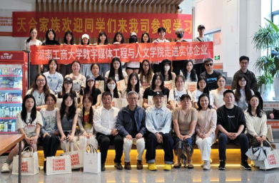 5月13日下午,湖南广电原党委书记、董事长,我校引智教授吕焕斌先生,数字媒体工程与人文学院王佩良副院长,数字传播系陈杏娟主任、研究生导师李芊教授,带领新闻与传播专业研究生和广告学专业本科生走进天合智造企业开展研学活动。此次研学旨在深化学生对行业前沿技术的认知,加强校企交流与合作。