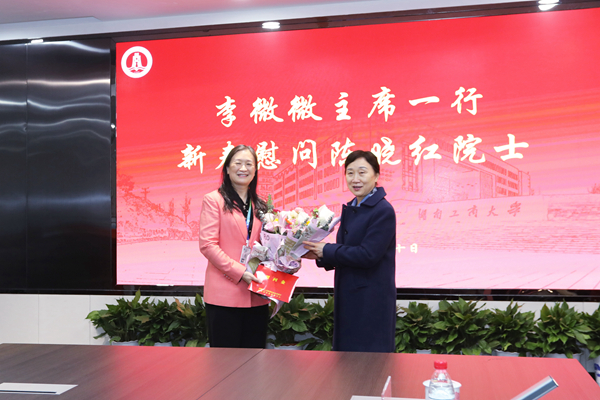 李微微主席充分肯定了陈晓红院士和湖南工商大学近年来围绕数字经济,在科学研究、教育教学、人才培养、服务社会等方面取得的发展成就,称赞陈晓红院士始终走在时代前列,不断探索科技发展和时代进步的新方向,在国家层面积极建言献策,同时也在省内大力推动社会治理、城市管理、产业发展等有关国计民生的重要工作,为国家和湖南经济社会发展作出了突出贡献。她表示,每次来到湖南工商大学都会有新的感受,看到学校事业发展蒸蒸日上、日新月异,心里由衷地感到高兴。