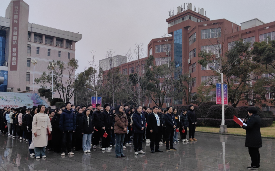 新学期,新起点;新思路,新发展。为了弘扬社会主旋律,展现新时代青年的良好风貌,3月4日上午7时,数字媒体工程与人文学院“逐梦新学期,一起向未来”升旗仪式于南校区英才广场举行。参加本次升旗仪式的有学院党委书记彭文忠老师、党委副书记王敬童老师、副院长王佩良老师、副院长刘耀老师、学工办主任赵雪琪老师以及学院南校区全体大一学生、党员、预备党员。